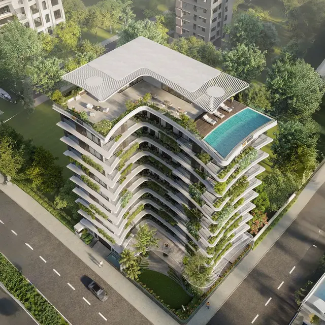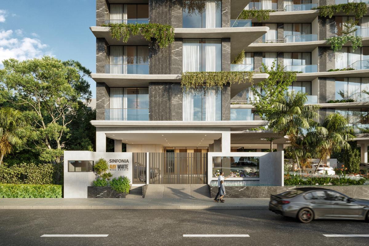 Ray White Sinfonia offers luxurious living with spacious apartments, a grand reception, rooftop infinity pool, gym, multipurpose space, and a garden at the ground floor. Located on a south-facing corner plot, all apartments enjoy south-facing views. The building also features dedicated parking, 24/7 security, and a community lounge, providing residents with a comfortable and well-rounded lifestyle.
